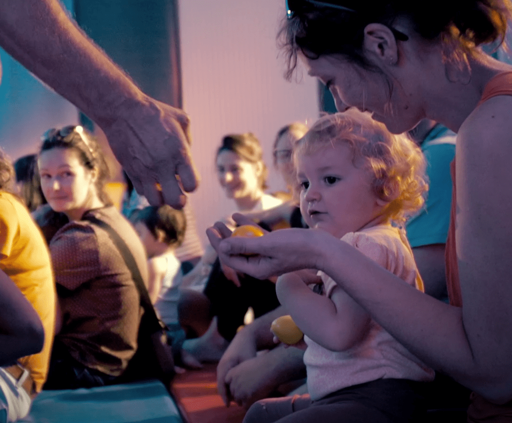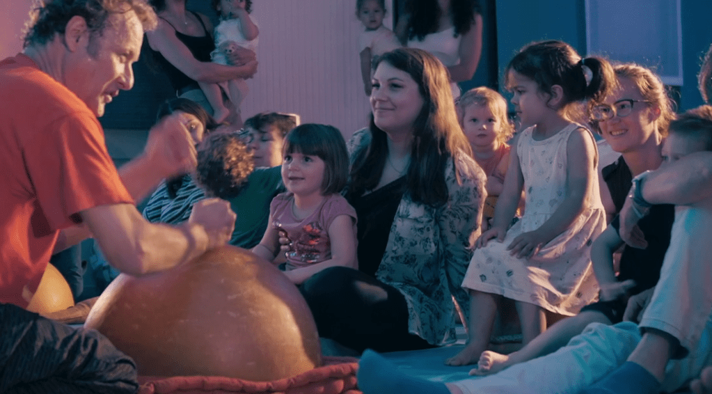 Avec une bonne dose d’autodérision, Etienne anime ce moment joyeux et dynamique pour que tous en profite, y compris les bébés.